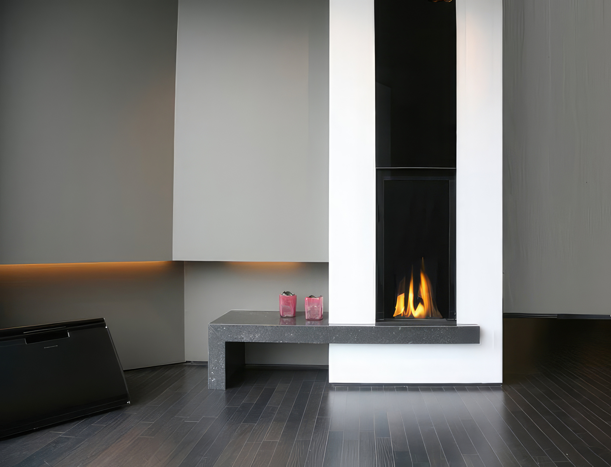 Благодаря вытянутому вверх стеклу (высотой почти 90 см), эта модель идеально подходит для создания эффектных световых акцентов в современных интерьерах, позволяя наблюдать за пламенем во весь рост.