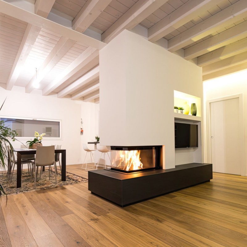 Дровяная каминная топка M-Design Luna 750 RD Diamond — это эксклюзивное решение для зонирования пространства. Модель RD (Room Divider) представляет собой трехсторонний стеклянный эркер, который позволяет созерцать огонь с трех разных сторон. Такой камин идеально подходит для установки в межкомнатные перегородки, создавая визуальный мост между гостиной и столовой или разделяя большую студию на уютные функциональные зоны.