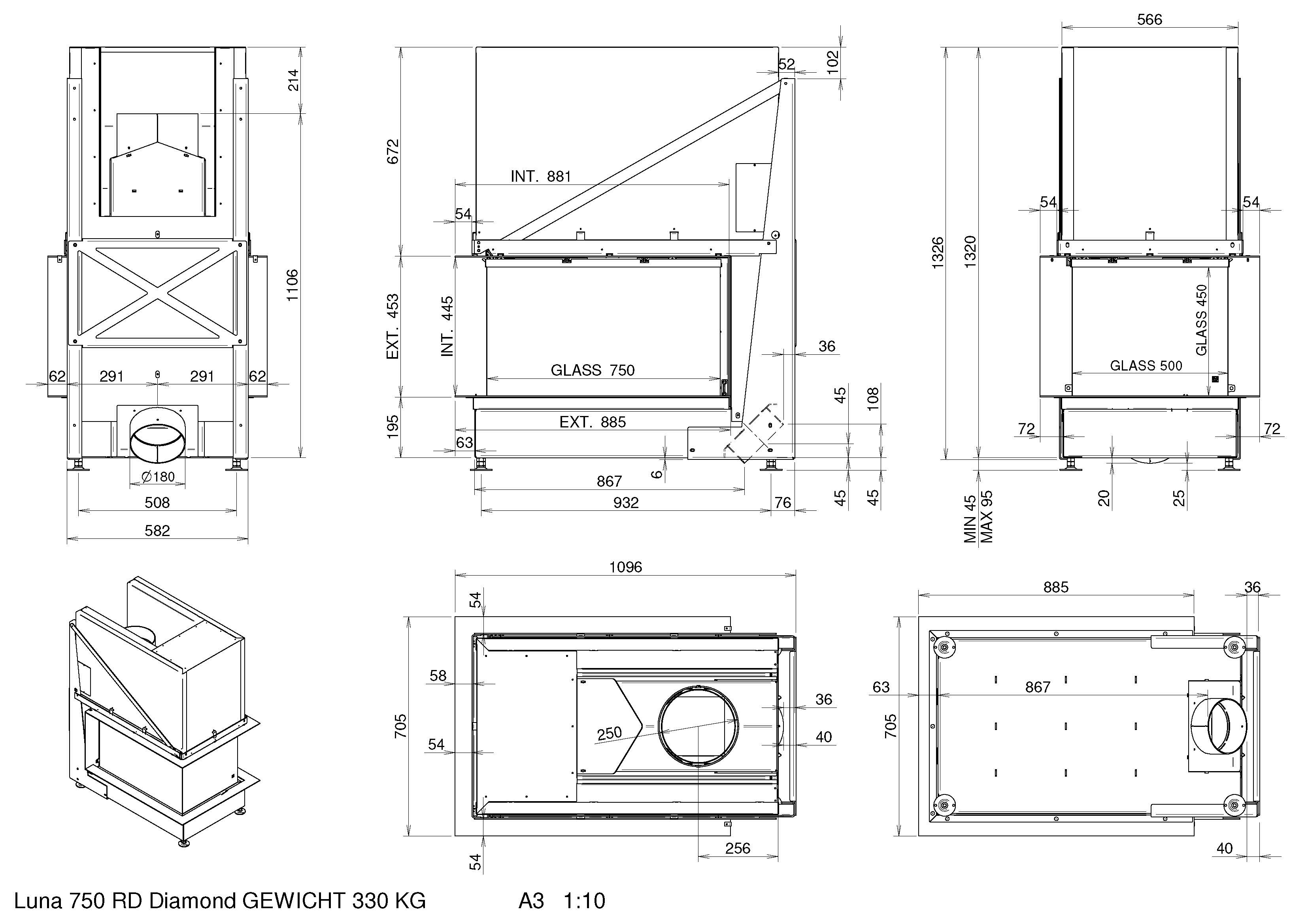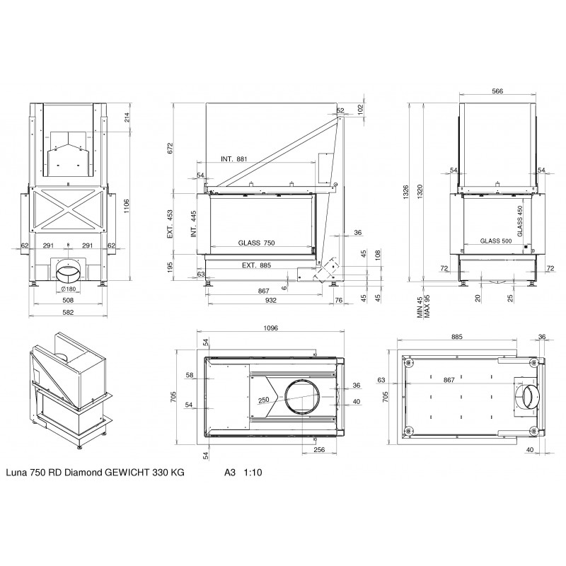 Купить дровяную каминную топку Luna 750 RD Diamond для дизайнерского интерьера