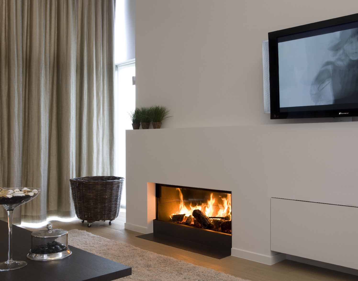 Дизайн Invisible: без ручек, швов, зазоров — просто ниша с огнем в стене, с 4-сторонней рамкой "0" для идеального примыкания камня или стен.