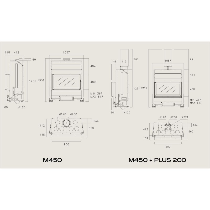 Rocal M450 — это современная каминная топка из серии M2120, сочетающая в себе высокую мощность, стильный дизайн и экологичность. Благодаря номинальной мощности 15 кВт и КПД 78%, модель способна эффективно обогреть до 190 м² жилой площади, обеспечивая уют и тепло даже в просторных помещениях. Топка соответствует европейскому стандарту Ecodesign 2022, имеет класс энергоэффективности A и сертификацию UNE EN-13229, что гарантирует её безопасность и экологичность.