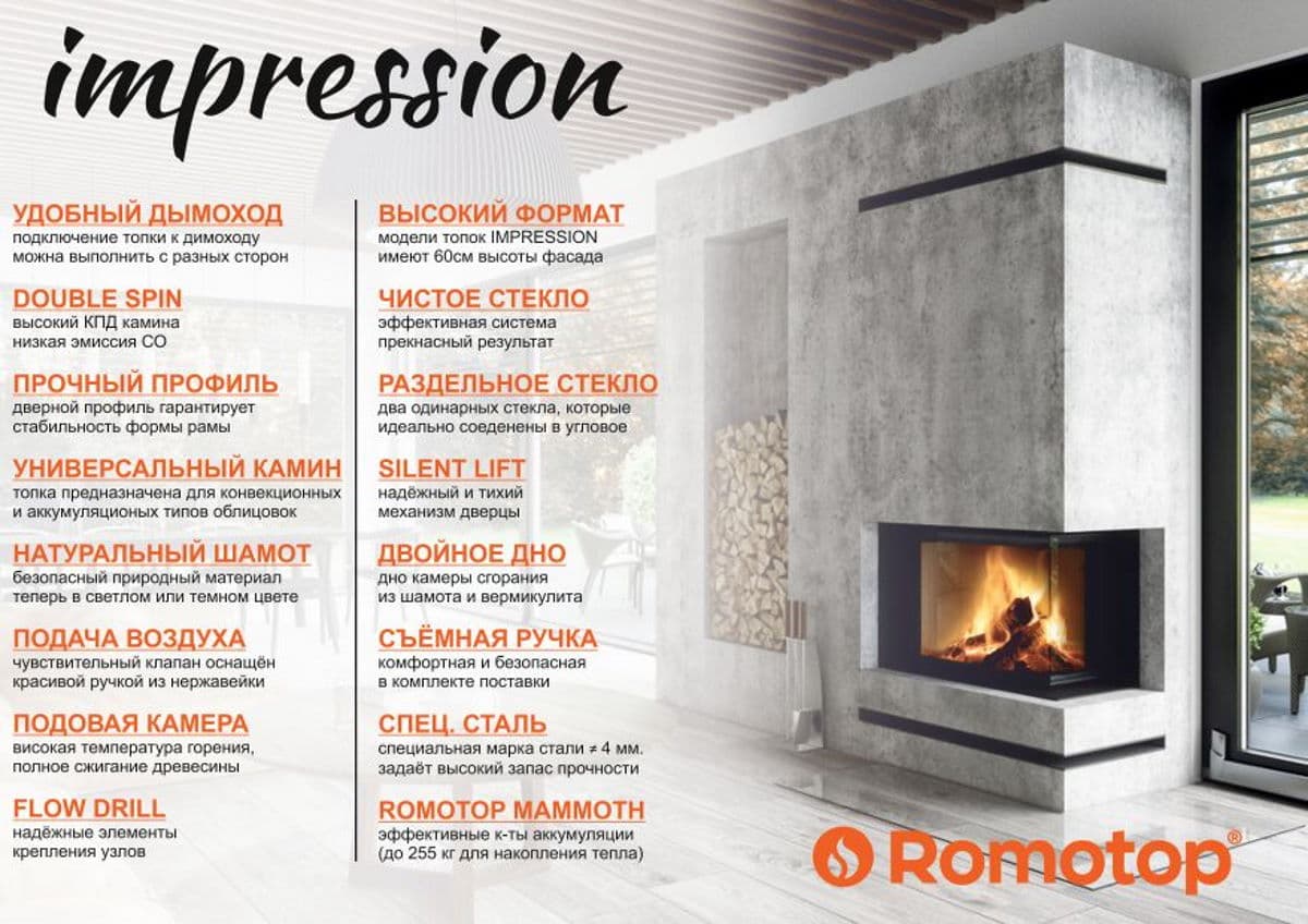 Преимущества каминной вставки Romotop IMPRESSION C 2G L 80.61.34.21: