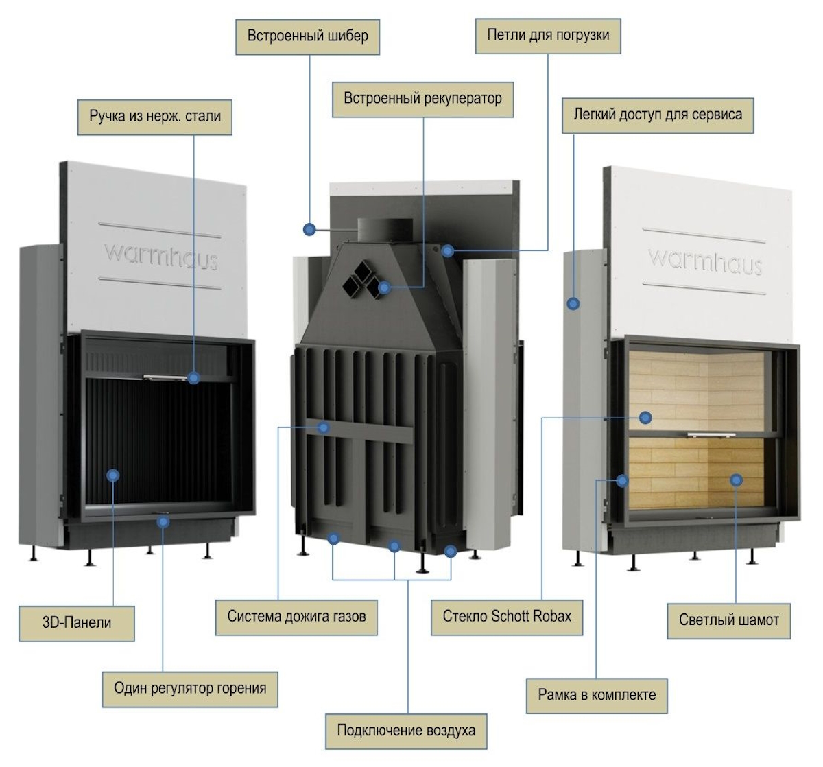 Встроенный теплообменник и шиберная заслонка (по запросу) — оптимизируйте распределение тепла и управляйте тягой.