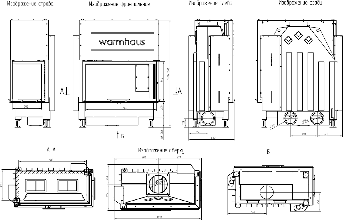 Каминная топка с правым угловым стеклом KANT R 100/57h производитель Warmhaus