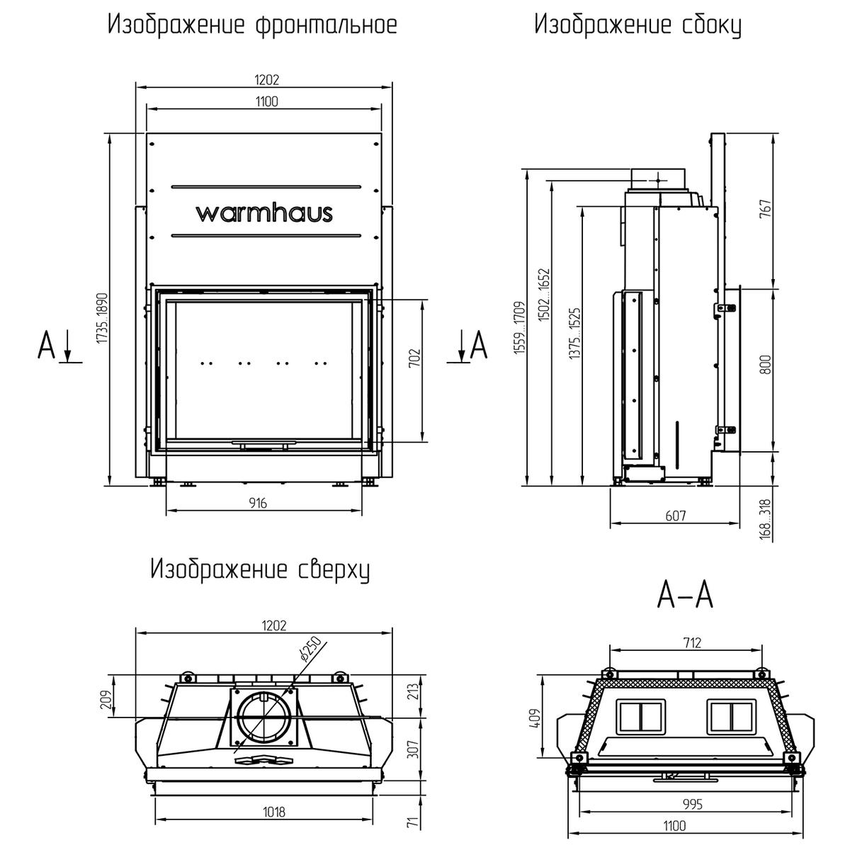 Каминная топка с прямым стеклом FLAT 100/80h производитель Warmhaus