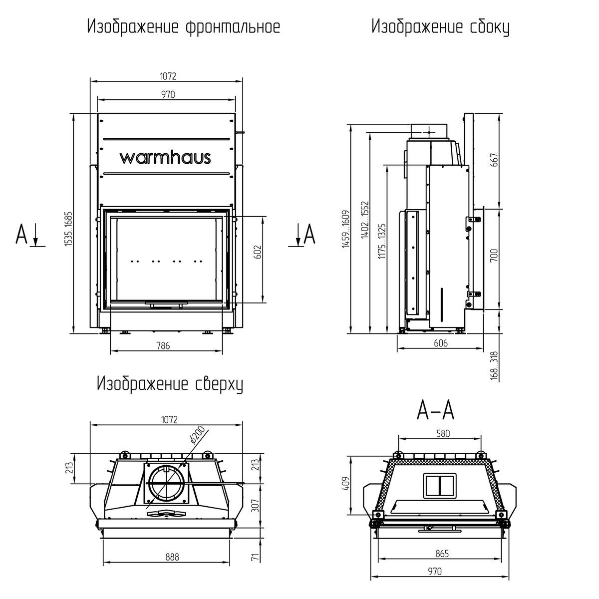 Каминная топка с прямым стеклом FLAT 87/70h производитель Warmhaus