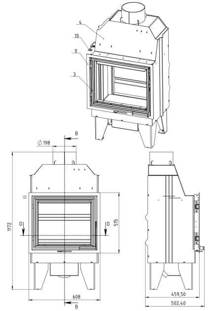 Чертеж каминной топки ТКТ 10.0-05 (В МОДИФИКАЦИИ "5161"):