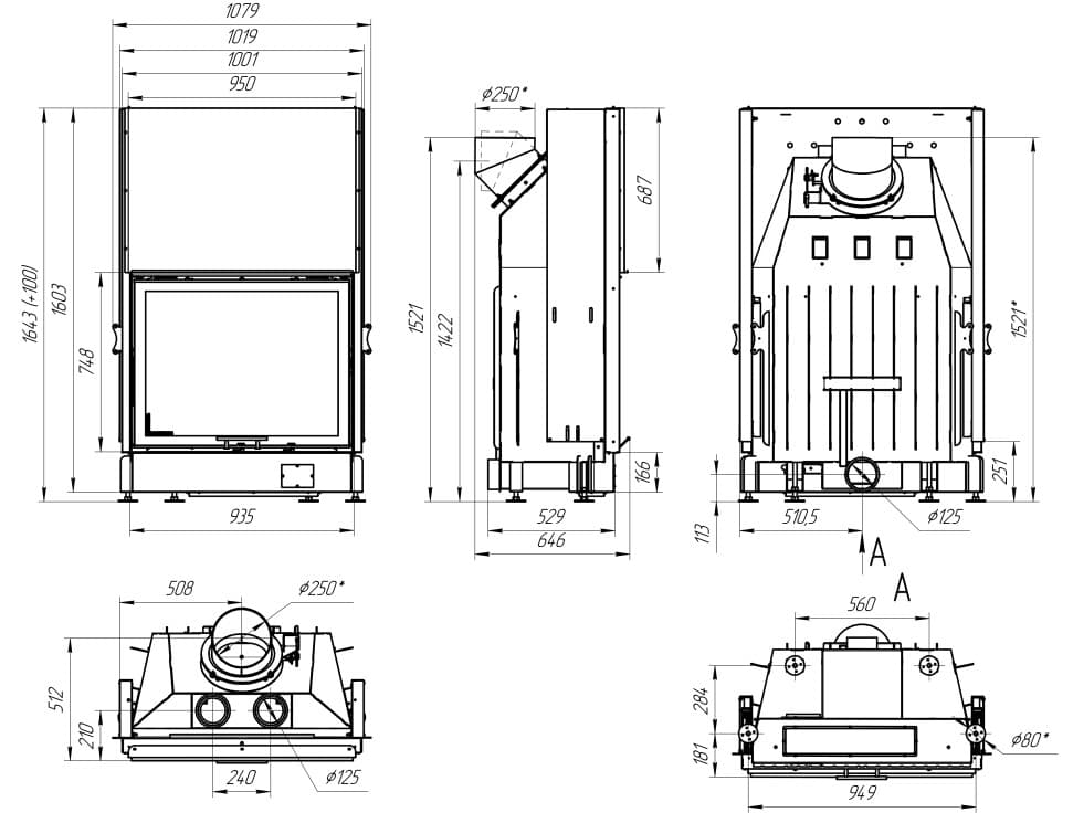 Каминная топка ВЕГА 1000 M принтинг чертеж: