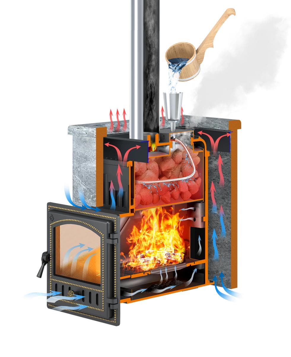 Теги: печь для бани, чугунная, эверест, в облицовке