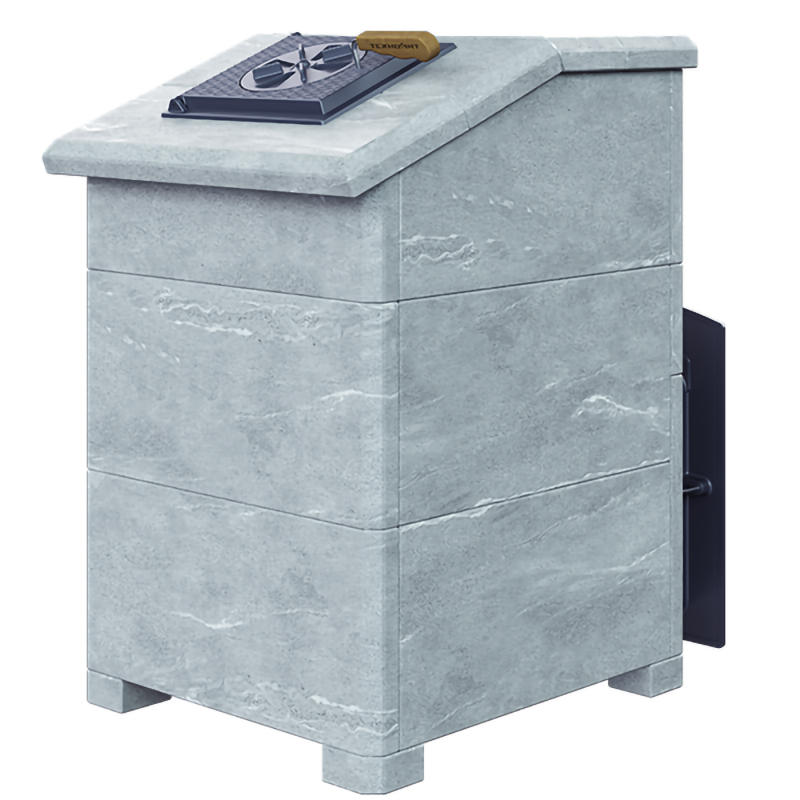 Комплект GFS Гефест ЗК 25(П)2 Президент 1000/40/50 Талькохлорит - печь с усиленной каменкой большей массы, с единым углублением внутрь топки для дополнительной укладки чугунного заряда. Теплосъемные шипы, со стороны горения пламени, в разы увеличивают площадь соприкосновения огня с каменкой и ускоряют передачу тепла, а также способствуют лучшему дожигу смешивая потоки пламени и воздуха поступаемого из воздушника. Эти усовершенствования значительно повышают мощность парообразования печи и выдают большее количество пара при непрерывной подаче воды. Каменка печей GFS Гефест-ЗК является незаливаемой.