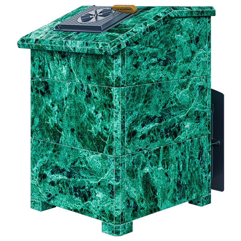 Не имеющая аналогов каменка толщиной 45 мм обеспечивает непревзойденную надежность и высокую теплоемкость, 120 теплосъемных шипов по всей её поверхности, позволяют каменке нагреться за 60 минут до 700 градусов и долгое время удерживать тепло.