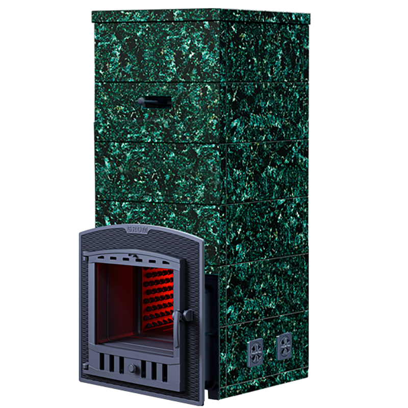 Печь Grom 40 (П2) отличается каменкой новейшей разработки: несмотря на огромную массу, каменка нагревается в 2 раза быстрее любых других моделей печей от завода "Техно Лит" и длительное время поддерживает набранную температуру неизменной. Печи линейки Гром имеют в комплекте чугунный короб для установки на каменку. Увеличенная масса, толщина боковых стенок 14 мм повышают надежность и теплоаккумулирующую способность, а для быстрого нагрева парной боковые стенки оборудованы конвекционными ребрами не только снаружи, но и на внутренней поверхности.