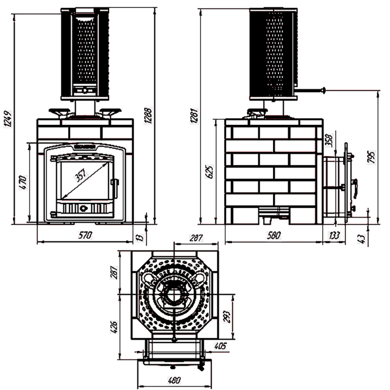 Печь эконом-класса быстро нагревает воздух в парной и производит качественный мелкодисперсный пар за счёт теплоёмкой каменки, оснащённой теплосъёмными шипами на нижней поверхности.