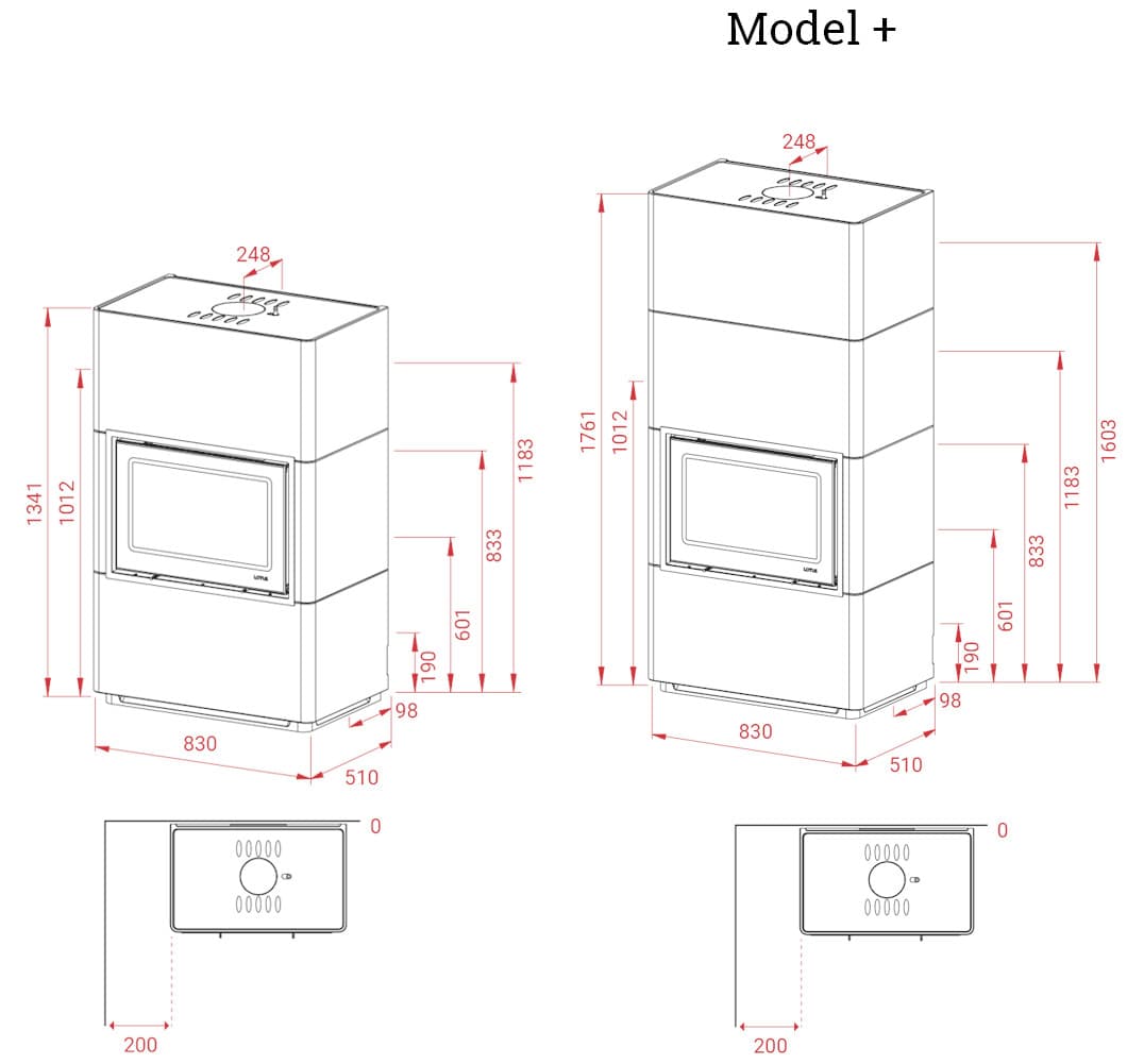 Если вы выберете эту версию Beto, вы можете дополнительно нарастить 40 см в высоту печи за счет дополнительной секции.