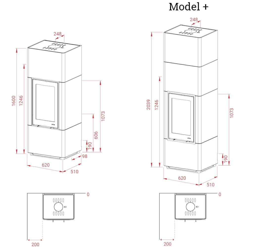 Если вы выберете эту версию Beto, вы можете дополнительно нарастить 40 см в высоту печи за счет дополнительной секции.