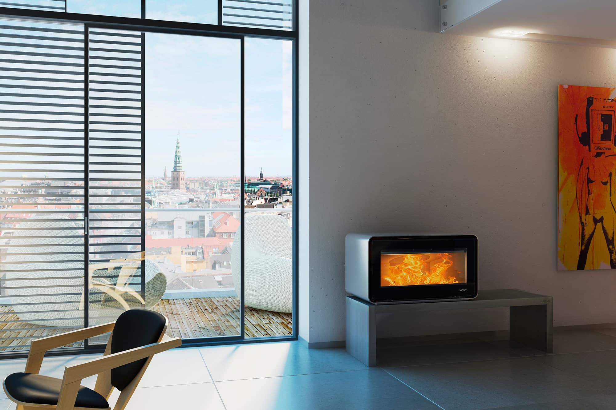 Мы могли бы создать новую печь, но вместо этого создали нечто абсолютно другое Lotus Living - все качества дровяной печи теперь в одной изящной и роскошной конструкции, которая объединяет источник тепла и дизайн мебели абсолютно оригинальным и гениальным способом. Lotus Living разработана архитектором Кааре Сольвстеном. Это не просто источник тепла, но и печь с новым упрощенным и изысканным оформлением, которая устанавливает абсолютно новый стандарт в сфере проектирования интерьера. Lotus Living - это автономный модуль, который позволяет выбирать основание из самых разнообразных форм и материалов. Привлекательная скамейка из серого бетона, которую можно использовать как для хранения вещей, так и для сидения, образует интересный, резкий контраст на фоне закругленной и элегантной отделки печи. Внешний корпус выполнен из стальных пластин толщиной 5 мм. Дверца с двойным стеклопакетом позволяет снизить излучение тепла и оптимизировать использование изоляции в целях достижения лучшего горения. Внизу печи в произвольном порядке установлены ручки из нержавеющей стали. Lotus Living - это надежный выбор небезразличного к стилю покупателя, желающего приобрести изящный источник тепла, который можно легко и органично вписать в современный дом. «Ливинг» предлагается в таких цветах, как светло-серый, холодный металлик, темно-синий и чисто-белый. Бетонная скамейка предлагается в двух размерах.
