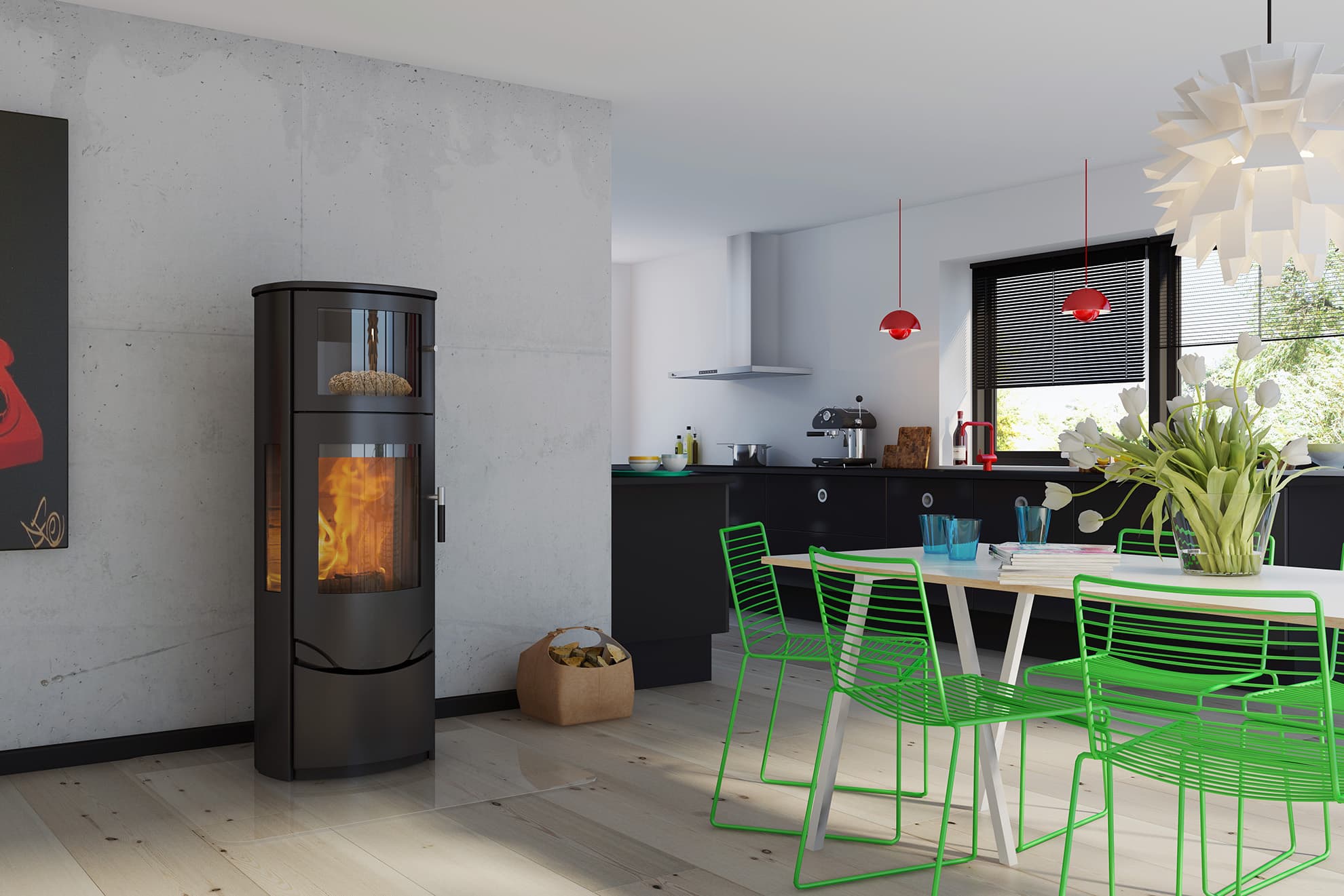 Серия «Лотос ПРИО» представляет собой лучшее из датского стиля художественного оформления и мастерства. Основная особенность серии «ПРИО» заключается в том, что сами печи по размеру больше обычных дровяных печей и поэтому представляют полноценный и уютный источник тепла. Её отличительная черта – это длительный срок службы, который позволяет надежно пользоваться дровяной печью на протяжении длительного времени. Печь, которая имеет изогнутый передний профиль и большую стеклянную дверь, поставляется с элегантной ручкой, отлитой из нержавеющей стали, которая обеспечивает простое и точное регулирование огня и решетки. Данные печи также предлагаются с боковыми смотровыми окошками и с креплением на колонне. Кроме этого, отделение для дров имеет место для хранения дополнительных принадлежностей, а также материала для загрузки и растопки. Наличие больших оконных стекол по обеим сторонам печи не только еще больше подчеркивает её элегантные формы, но также приводит к повышению температуры в топке, тем самым улучшая горение. Теперь согревающий отблеск огня можно наблюдать из любой точки помещения и при любой яркости освещения. Отличительной чертой этой серии являются высококачественные материалы и конструктивные детали.