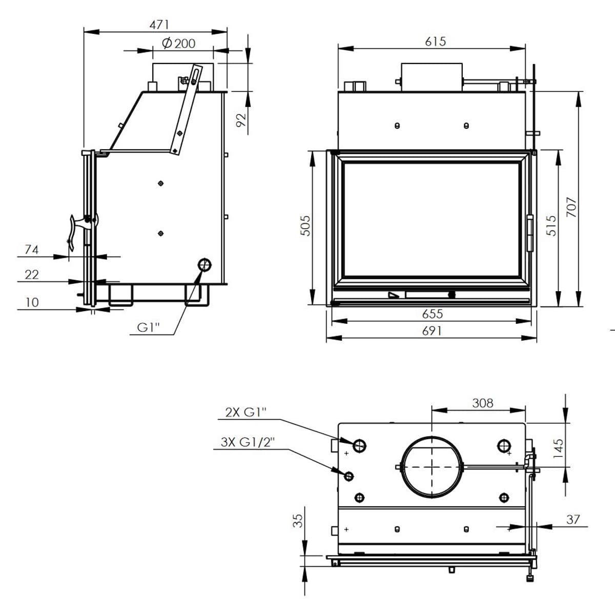 Каминная топка с водяным контуром Nordflam LB800 PW с водяным контуром изготовлена из стали, футерована шамотным кирпичом, а дверца изготовлена из чугуна. Мощность топки 14 кВт. Мощность водяного контура 7,5 кВт. Объем водяного контура 31 л. Топка LB800 укомплектована шибером для лучшей регулировки процесса горения, а также для предотвращения выхода тепла в дымоход. Есть возможность подключения адаптера подвода внешнего воздуха.