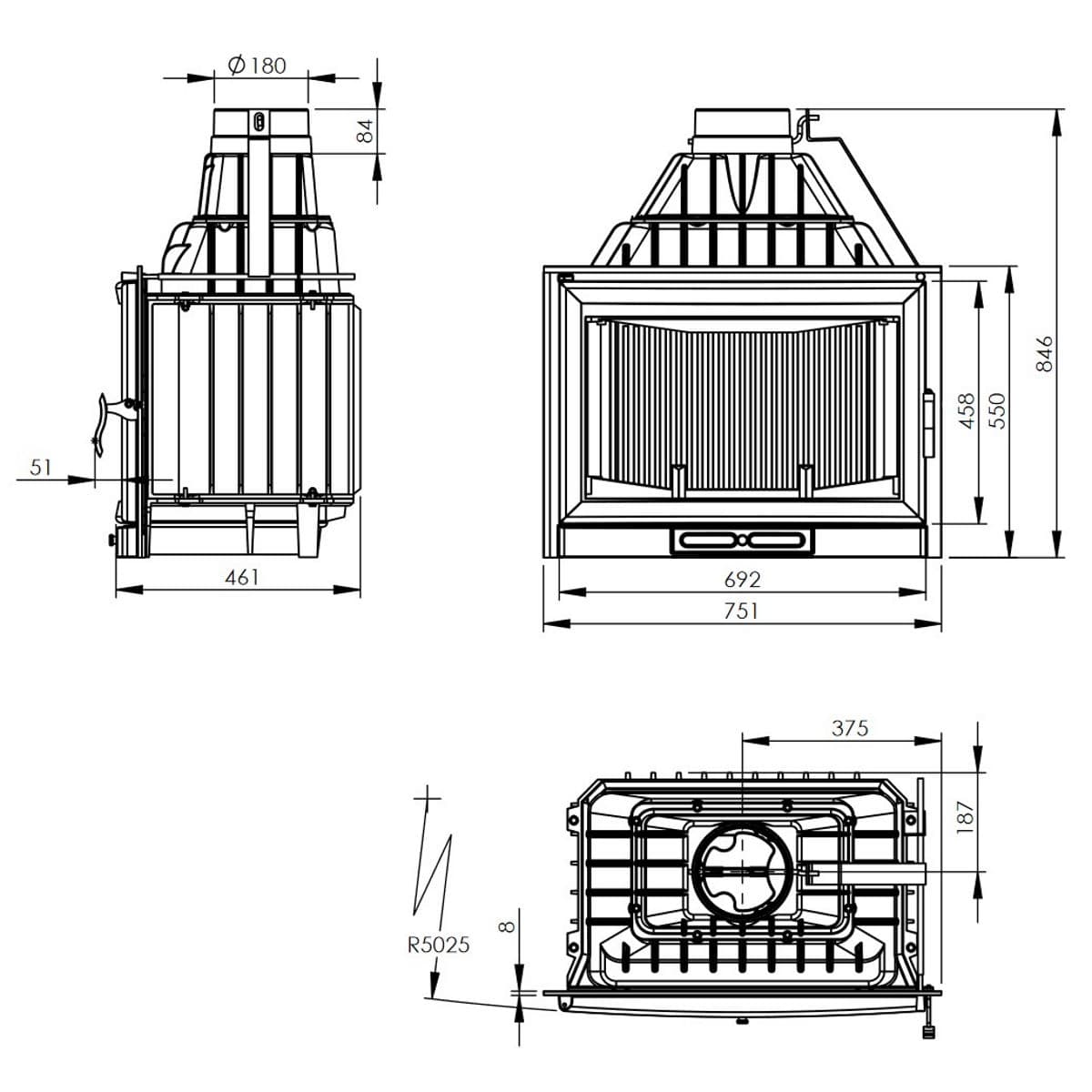 | Диаметр дымохода (мм) | 180 |