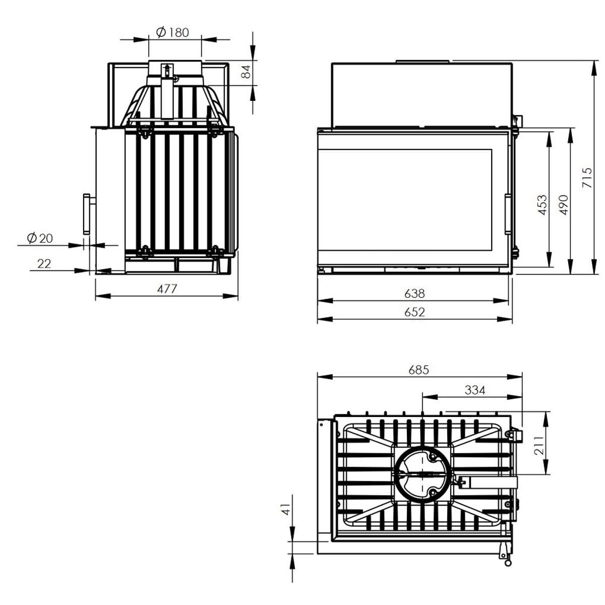Топка Torn Right укомплектована шибером для лучшей регулировки процесса горения, а также для предотвращения выхода тепла в дымоход. Есть возможность подключения адаптера подвода внешнего воздуха. Тыльная сторона топки Torn Right оснащена двойной чугунной стенкой. Задняя стенка у каминных топок подвержена максимальной термической нагрузке. Дополнительная сменная внутренняя чугунная пластина защищает основной корпус топки от разрушения при чрезмерных нагрузках.