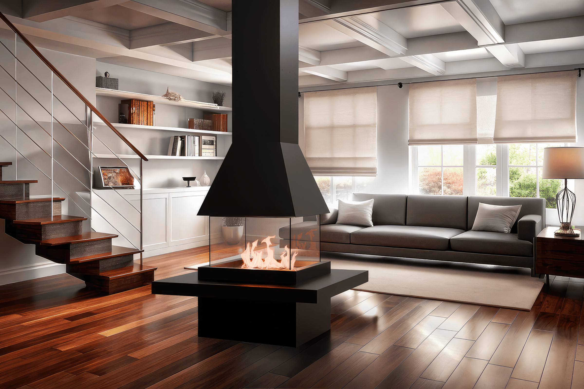 AVES 17 Сицилия— современный островной камин премиум-класса, оснащённый автоматическими опускающимися стеклянными панелями. Уникальная конструкция обеспечивает высокий уровень безопасности, удобства и визуальной выразительности. Прямые термостойкие стекла открывают панорамный обзор огня, а технологичное исполнение делает модель идеальной для интерьеров в стиле хай-тек, минимализм и модерн. Камин олицетворяет баланс между эстетикой и функциональностью, создавая атмосферу уюта и статуса.