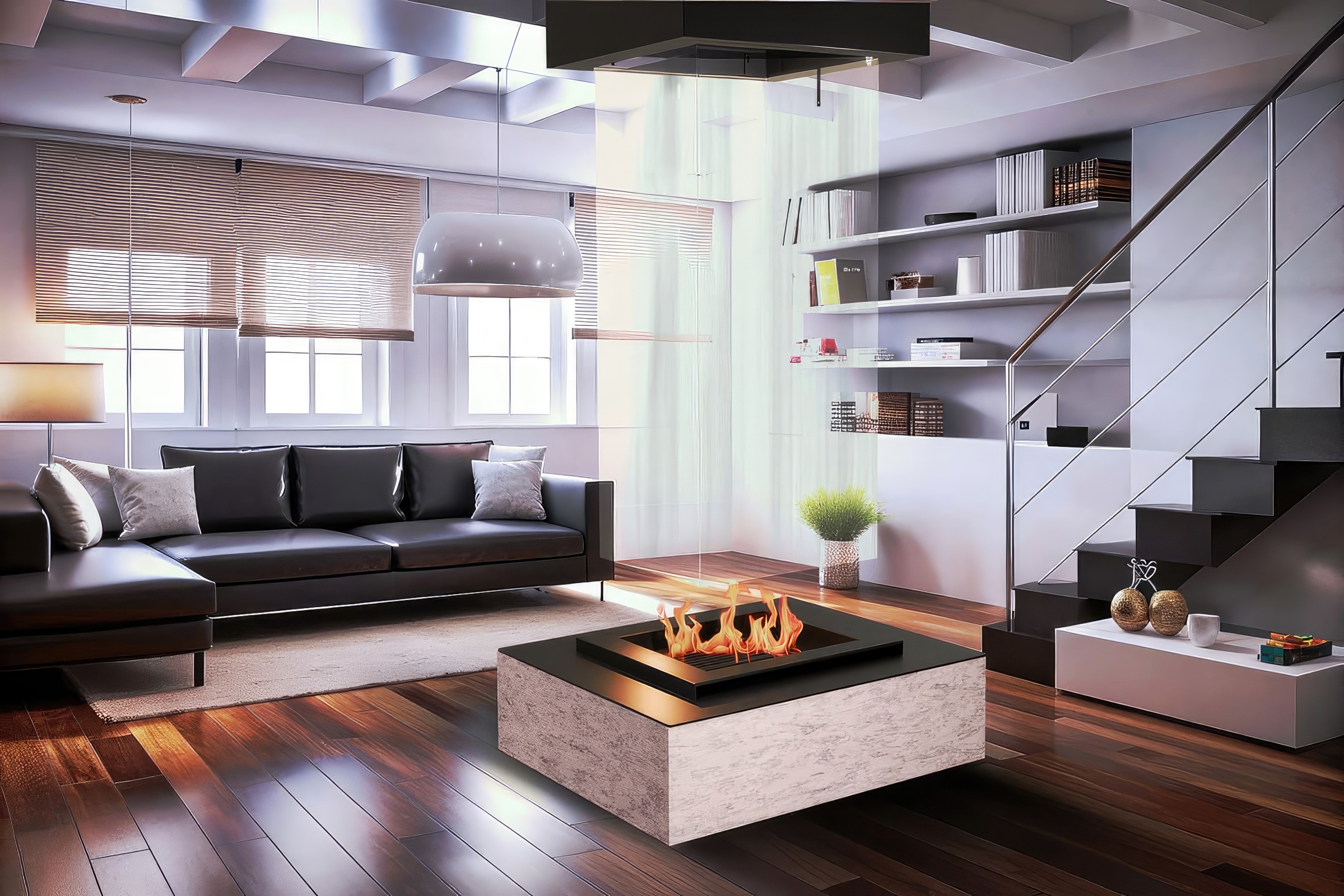 AVES 3 Тибр — центральная островная каминная топка с четырьмя термостойкими стеклянными панелями, обеспечивающими сквозной обзор пламени. Элегантный дизайн визуально облегчает пространство, а мобильное основание с роликовыми ножками позволяет легко перемещать камин внутри помещения. Идеально подходит для зонирования интерьера и создания уютной атмосферы в современных домах и коммерческих пространствах.