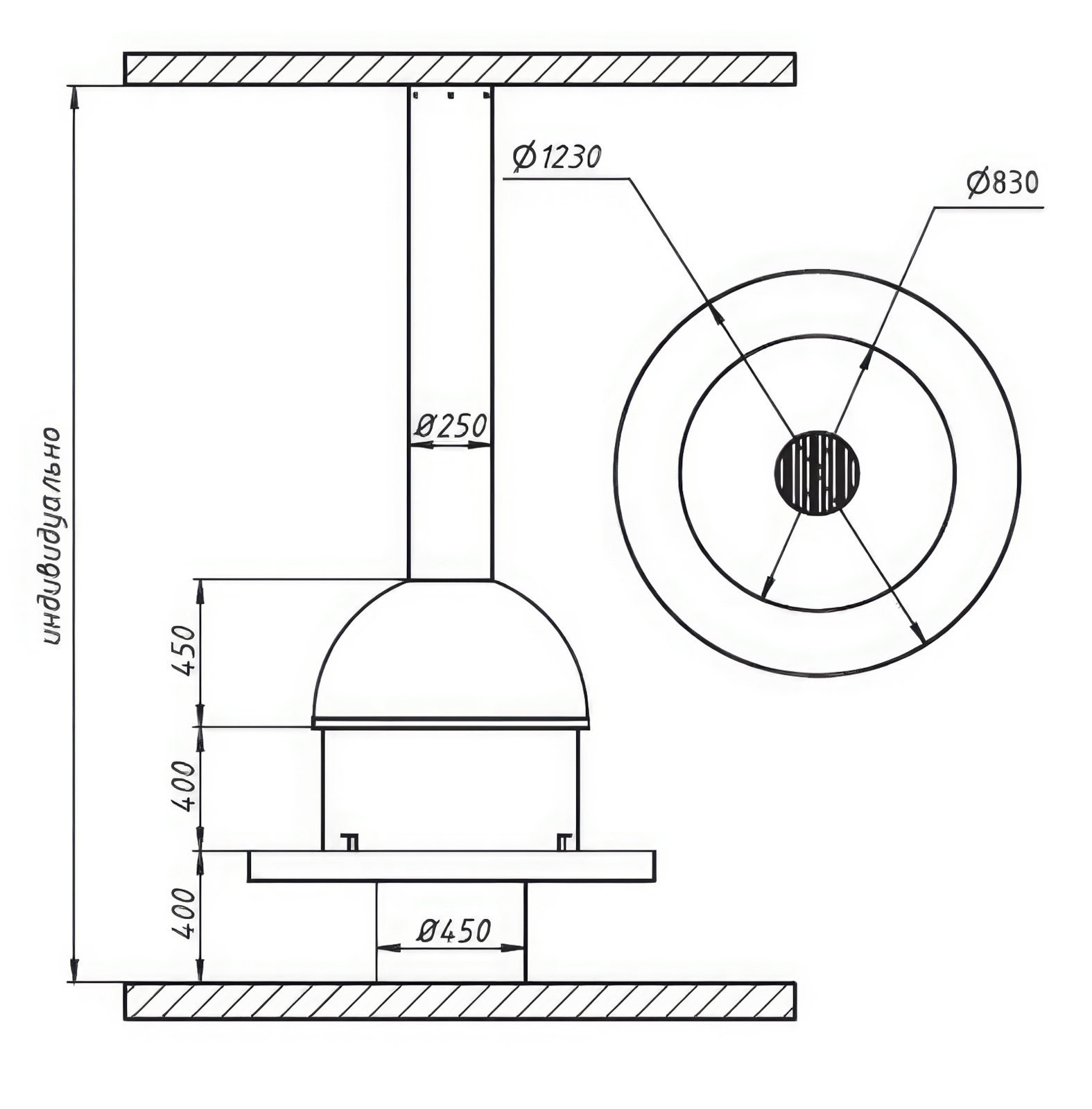 Островной камин AVES 37 МАТЕРА производитель AVES