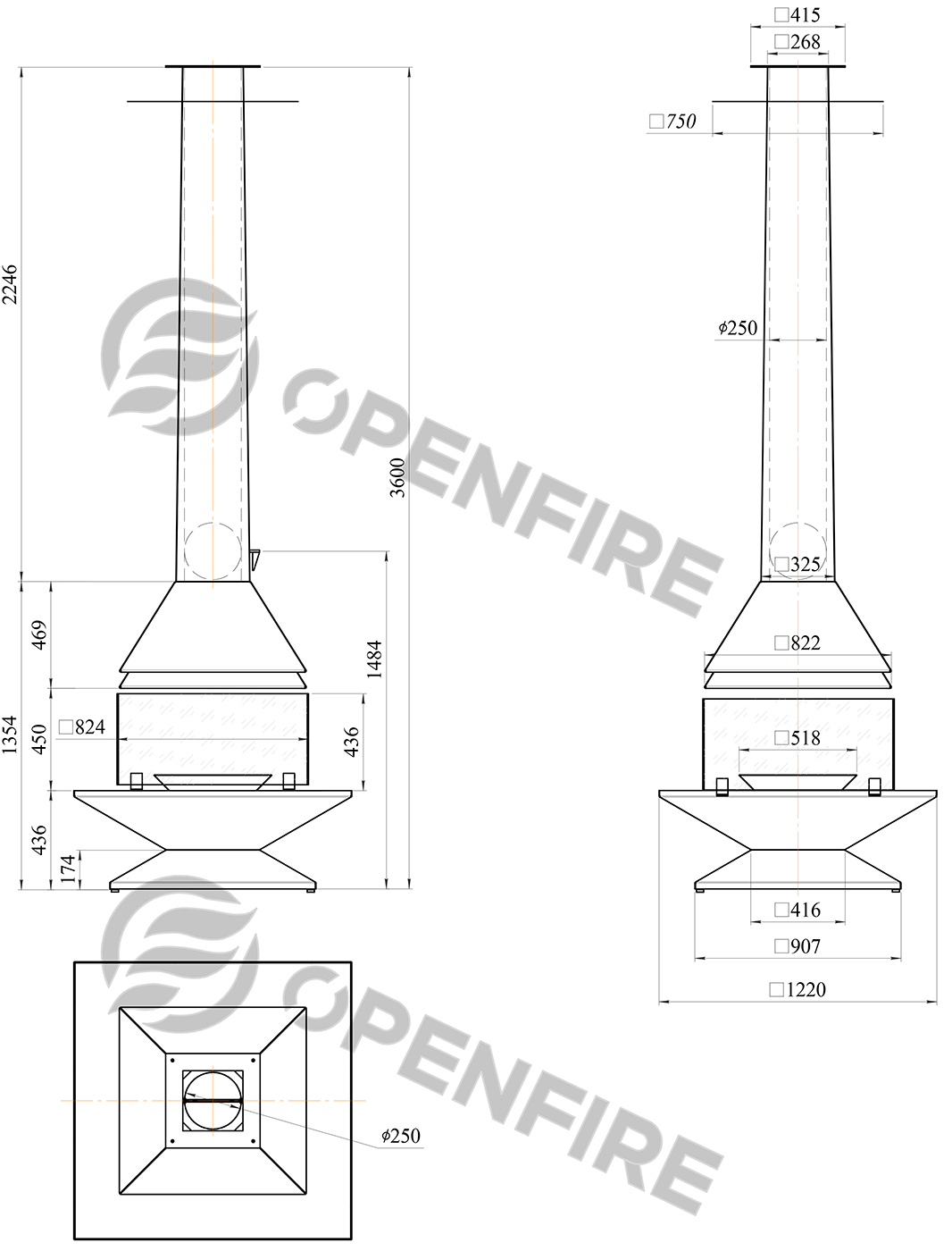 - Общая выстота изделия:360 см (в базовом исполнении, при высоте потолков выше 3,6 метра