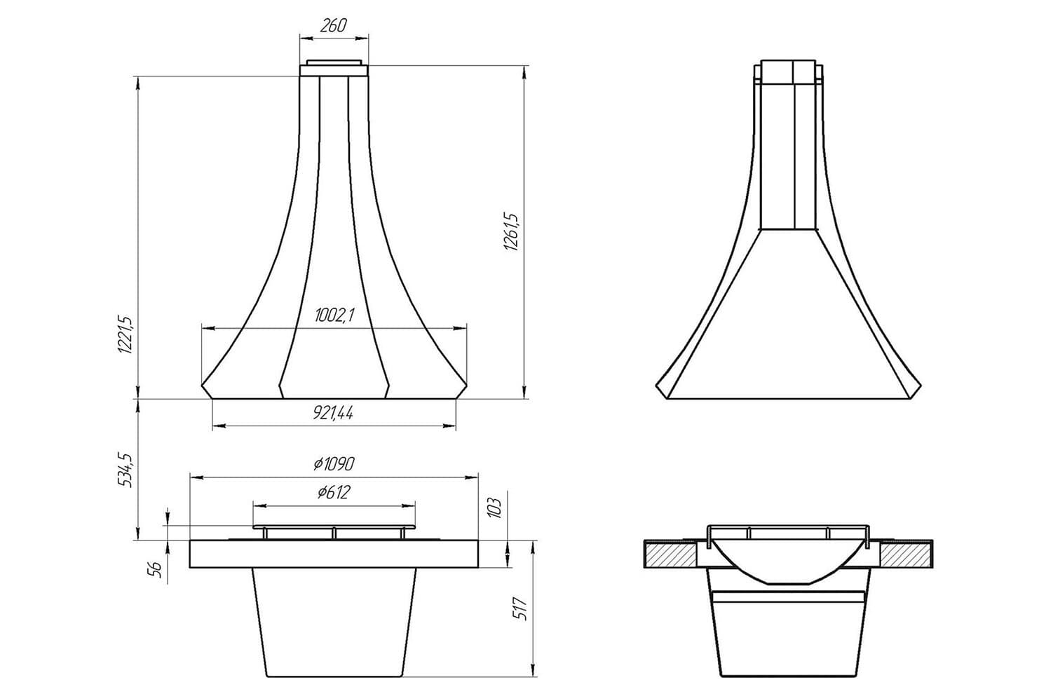 - Диаметр:основания: 1090 мм купола: 1002 мм ограждения: 612 мм