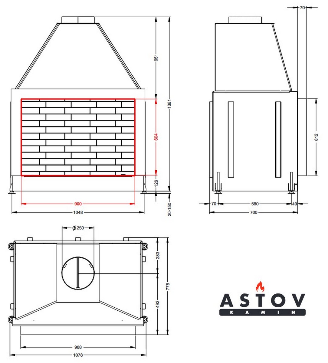 Открытая Каминная топка АСТОВ ОПС 900 У производитель Astov