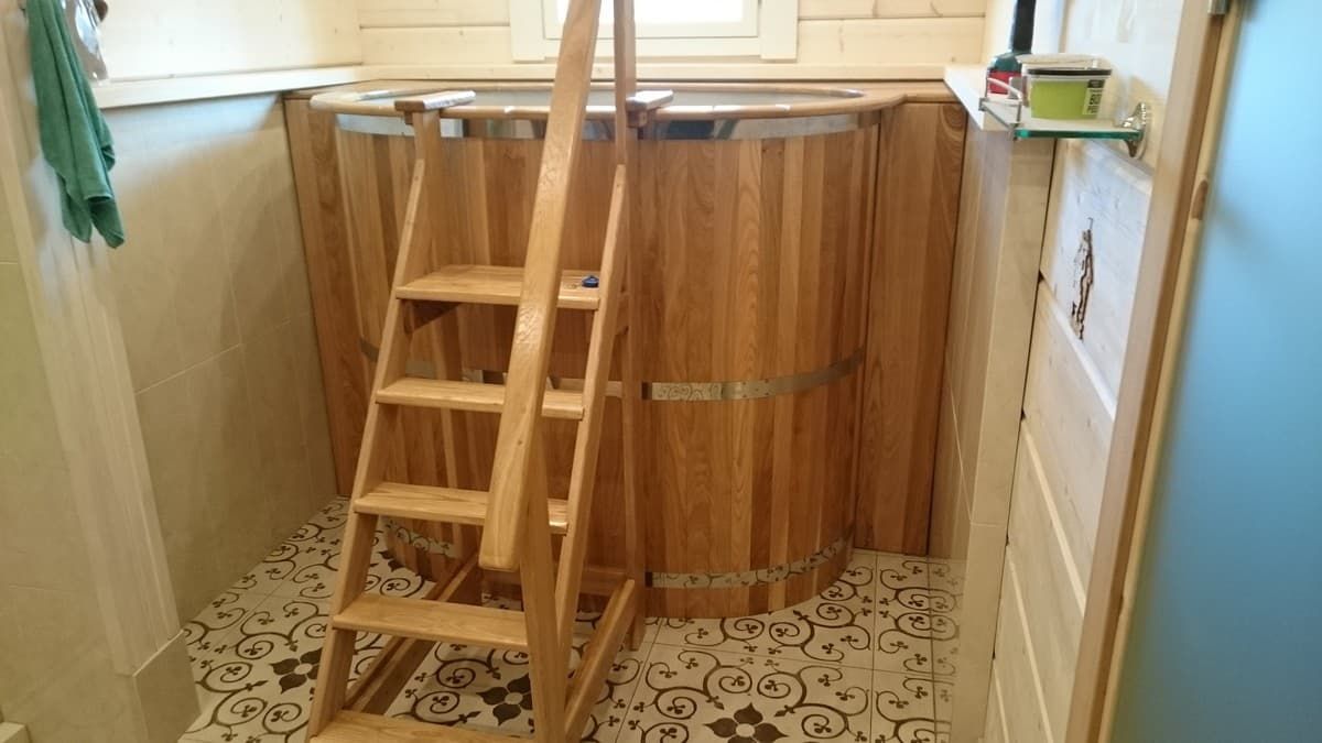 Величина объема овальной модели зависит от ее размеров по ширине, длине и высоте. Овальные купели по своей формы практичны и универсалы. Для изготовления применяется древесина устойчивая к гниению из дуба или лиственницы. Цена зависит от размера и материала изготовления. Овальная купель идет в комплекте с лестницей, сливом, сиденьем и переливом воды, ключом для подтягивания обручей.