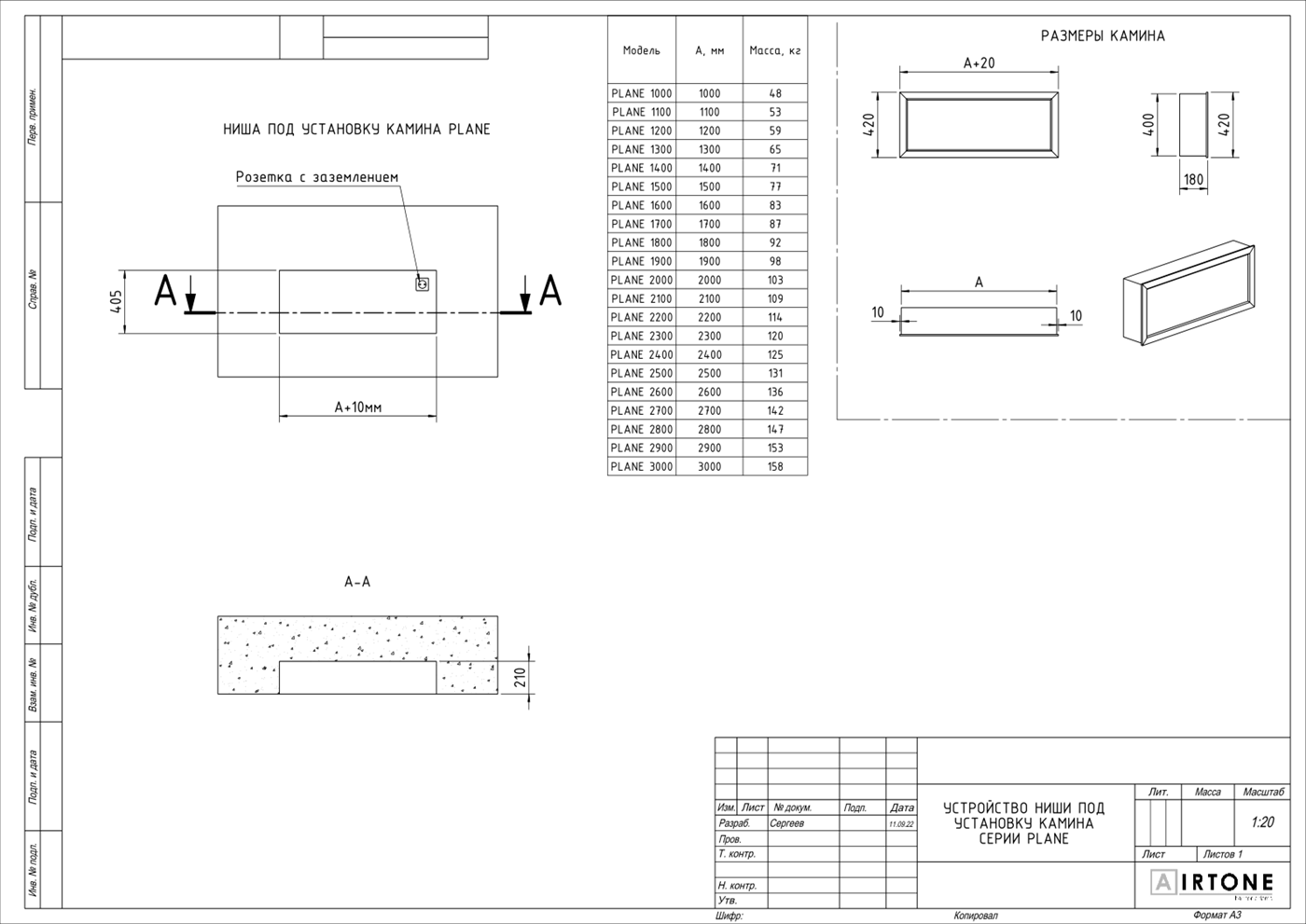 Электрокамин серии PLANE является базовой линейкой компании AIRTONE. Особое внимание при его разработке уделялось реалистичному, объемному эффекту огня создаваемому специальным барабаном. Имитация дров вкупе со звуком потрескивания создает очень реалистичный эффект горения. Благодаря компактной глубине встраивания и оптимальной высоте серия каминов PLANE будет идеально подходить под любой интерьер и задумку. Помимо стандартных длин компания Airtone готова изготовить любую длину камина под самый взыскательный запрос. Одной из инженерных особенностей камина является съемная магнитная рамка, которая позволяет с легкостью скрывать монтажное отверстие после установки камина.