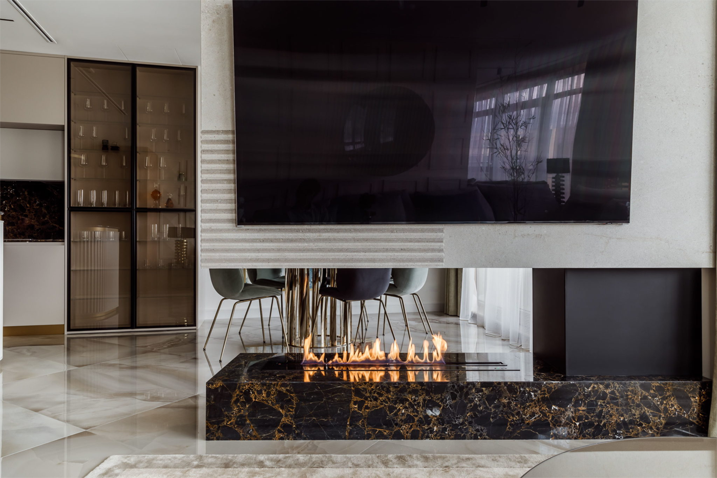 Встроенный насос позволит заправлять камин легко и без демонтажа блоков. Опционально возможно подключение камина к централизованной системе водоснабжения, при условии использования обратноосмотической установки. Органичное соотношение ширины и высоты позволит встроить камин не смотря ни на что. А верхняя панель закроет все щели.