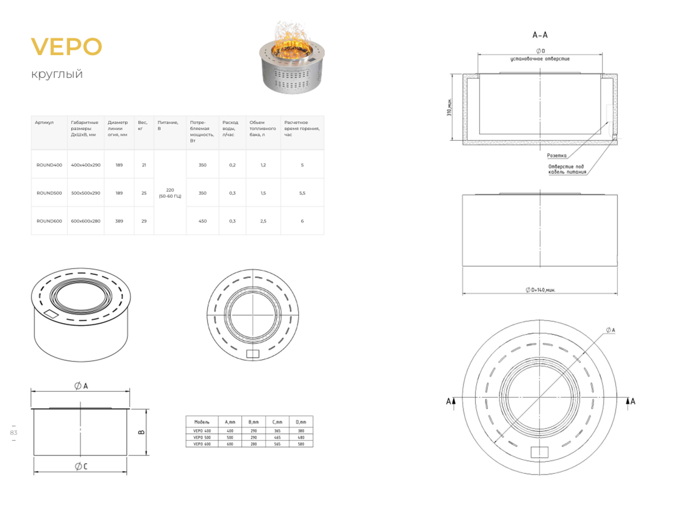 Паровой электрокамин Airtone VEPO ROUND 600 производитель Airtone