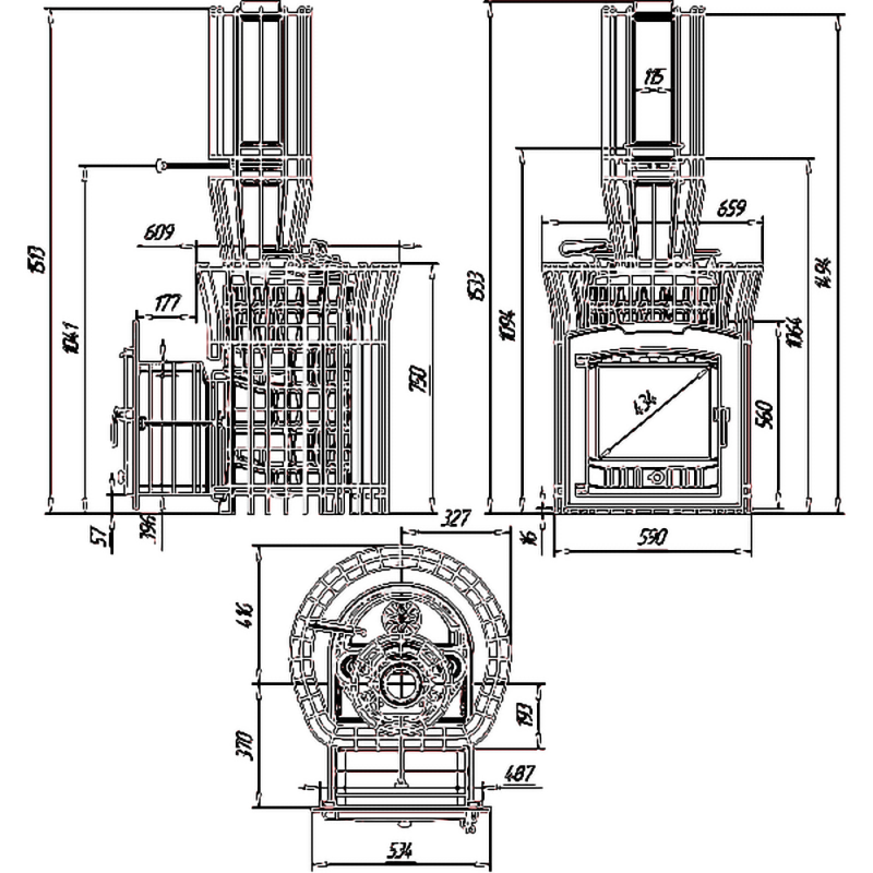 Печь полностью изготовлена из чугуна