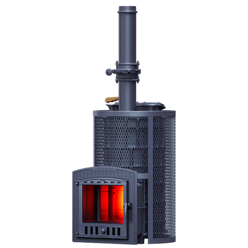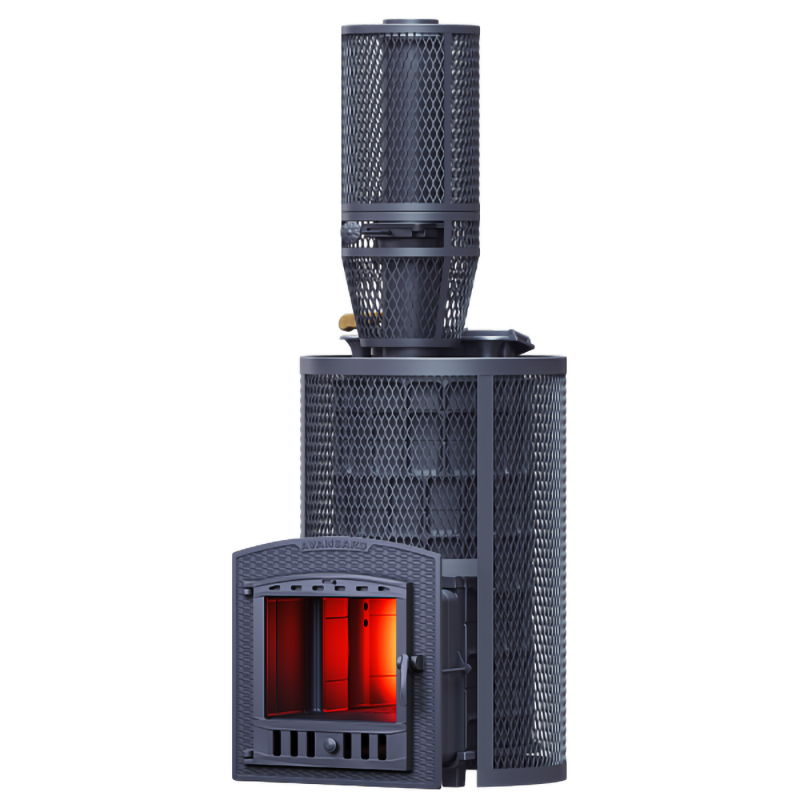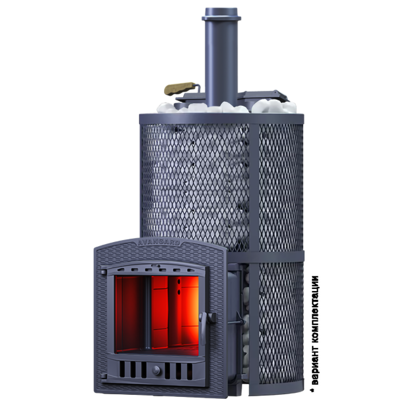 Масса пароиспарителя в печи AVANGARD 51 кг, и он нагревается прямым контактом с пламенем. У пароиспарителя 2 поверхности с увеличенной рабочей площадью – снизу идёт нагрев огнём, а сверху поддаётся вода для пара. У печи уникальная, массивная каменка с теплонакопительными воронками, для получения легкого пара.