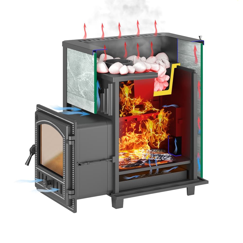 Теги: печь для бани, чугунная, эверест, в облицовке