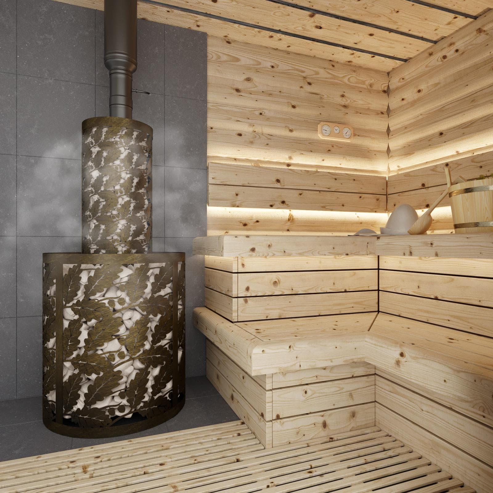 В комплектацию входит: Сборная печь со съемным топочным тоннелем и чугунной дверкой. Цилиндрическая закрытая каменка из нержавеющей стали марки AISI 430, рассчитанная на загрузку 35-40 кг камней мелкой фракции. Система капельной подачи воды на камни закрытой каменки. Канал для подачи воздуха в область вторичного дожига. Массивный чугунный колосник. Зольный ящик, выполненный из прочной стали, позволяющий оперативно проводить уборку печи. Стальной конвекционный кожух для укладывания камней. Термостойкий герметик для сборки печи. Инструкция по монтажу и эксплуатации.