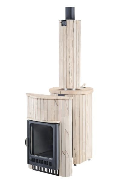 Печь для бани от производителя VÖHRINGER серии Малютка ПФ 18 окаменевшее дерево. Она рассчитана для установки в парной объёмом до 18 м3.