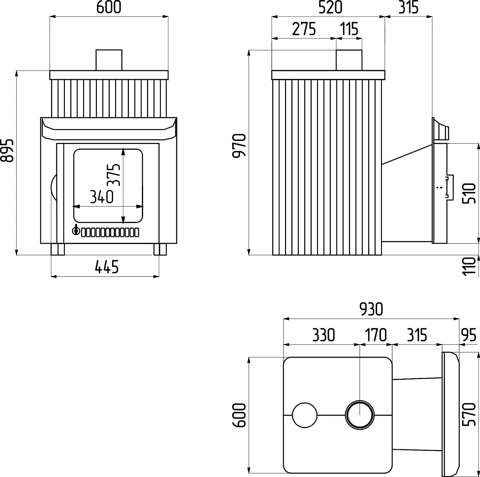 | Материал дверцы | Конструкционная сталь / Жаропрочное стекло |