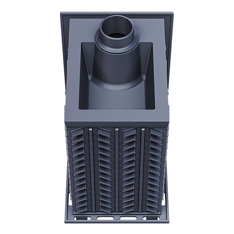 Пирамидальные шипы, расположенные внутри топки на боковых стенках способствуют эффективному горению дров и увеличивают площадь теплопередачи на 80%, что позволяет печи более динамично войти в режим.
