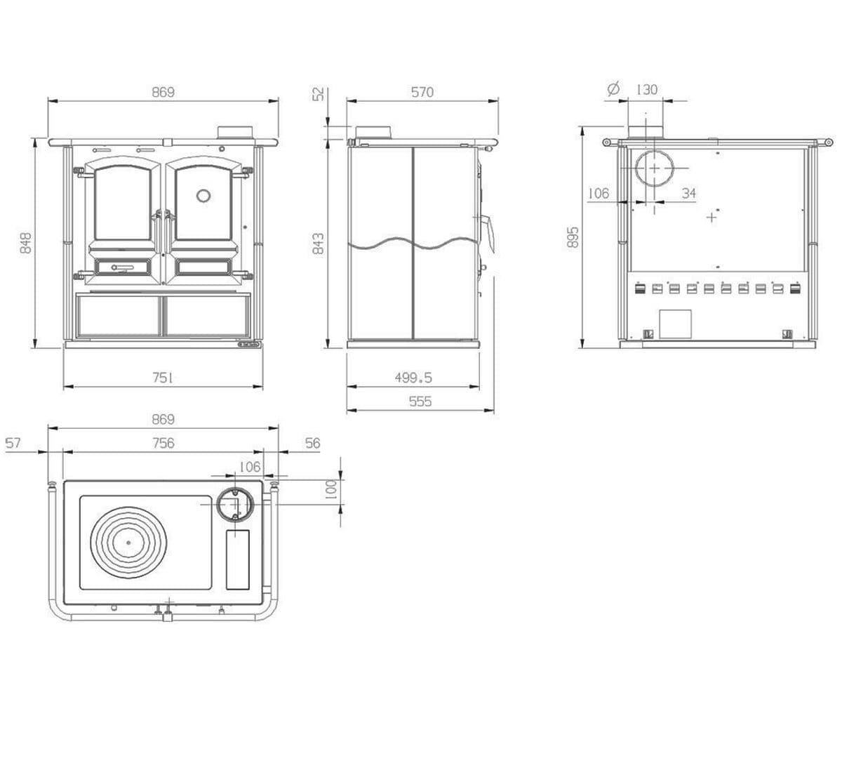 Готовка с Regina 631 WW требует небольшой практики, но она быстро попадет в вашу кровь. Кольца конфорки изготовлены из чугуна, и их можно снять, чтобы использовать тепло от камина. Вы можете постоянно следить за температурой с помощью встроенного в печь термометра - регулировка осуществляется в зависимости от количества добавленных поленьев или брикетов. Вы можете удобно хранить топливо в деревянном ящике.