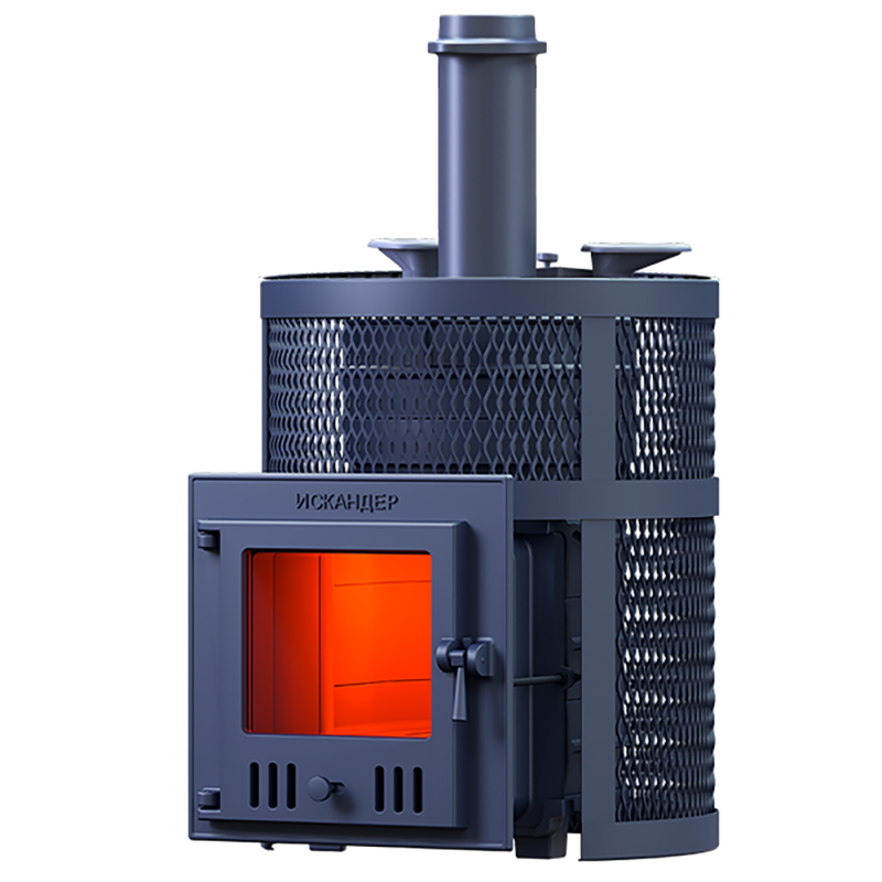 Печь «Искандер» рассчитана на использование с защитным кожухом-сеткой из стали с последующей засыпкой камнями.