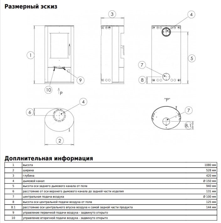 | Диаметр дымового патрубка | 150 мм |