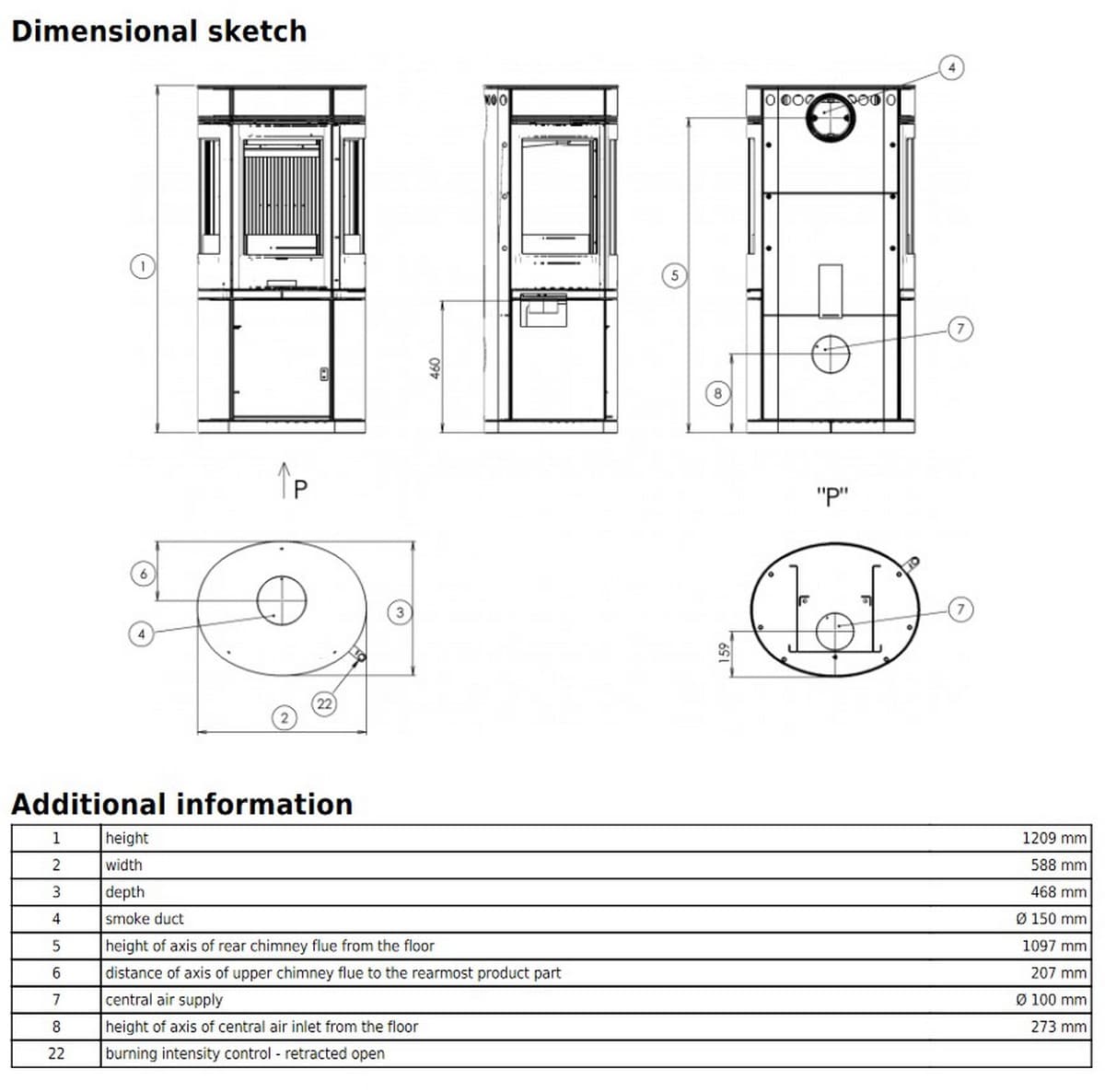| Диаметр дымового патрубка | 150 мм |