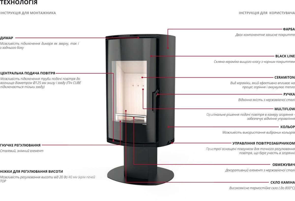 Возможность регулирования печи от 20 мм до 40 мм (кроме TOP).