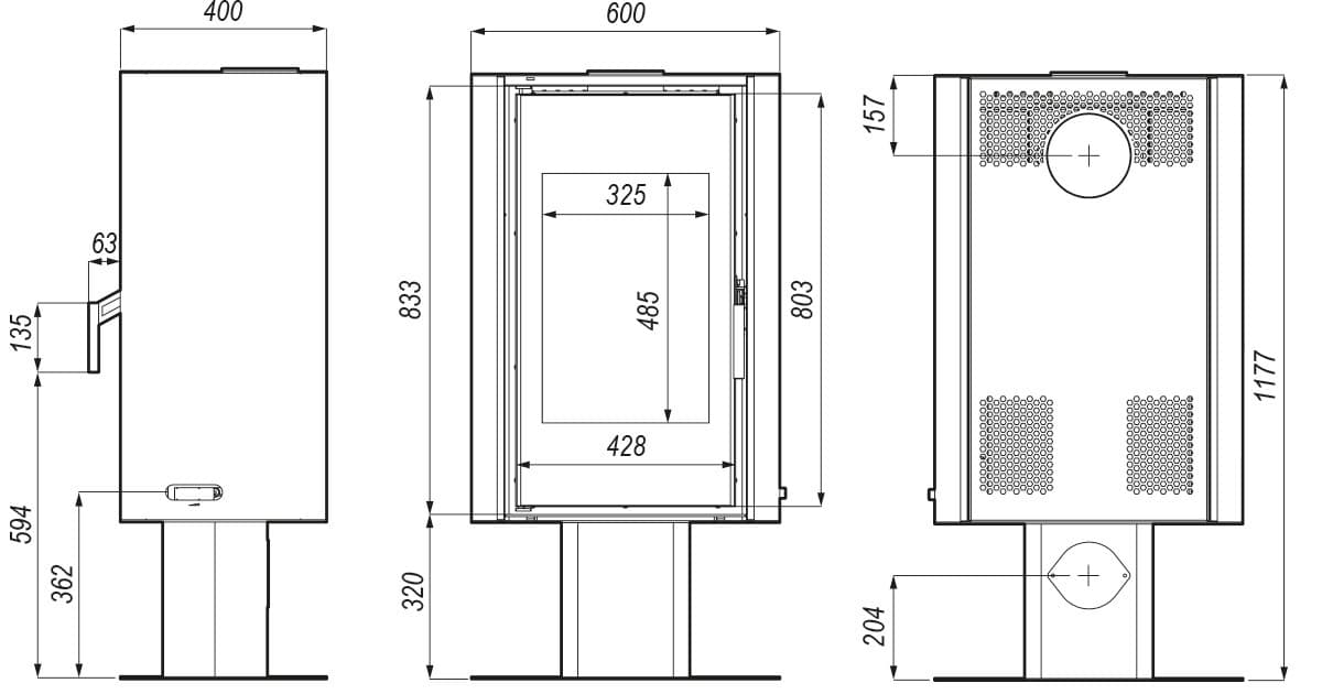 Возможность регулирования печи от 20 мм до 40 мм (кроме TOP).