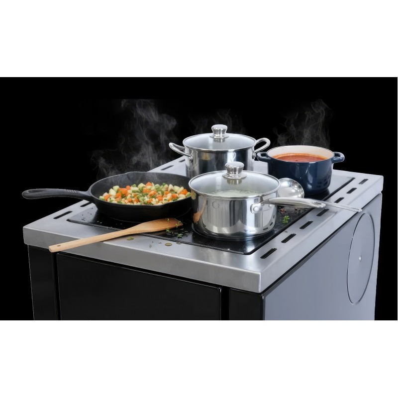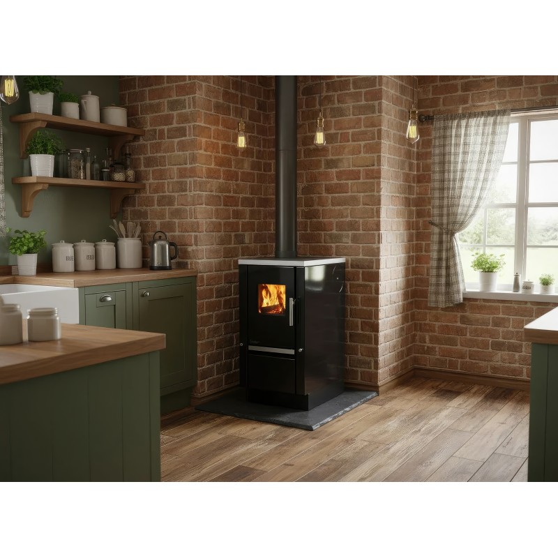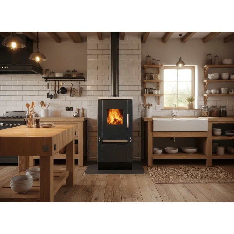 Внутренняя камера топки футерована высокоплотным вермикулитом, который отражает тепло в топочную камеру, повышая температуру горения и способствуя полному дожигу газов. Модель поддерживает систему CPV (подвод воздуха извне), что критически важно для современных герметичных домов с принудительной вентиляцией.