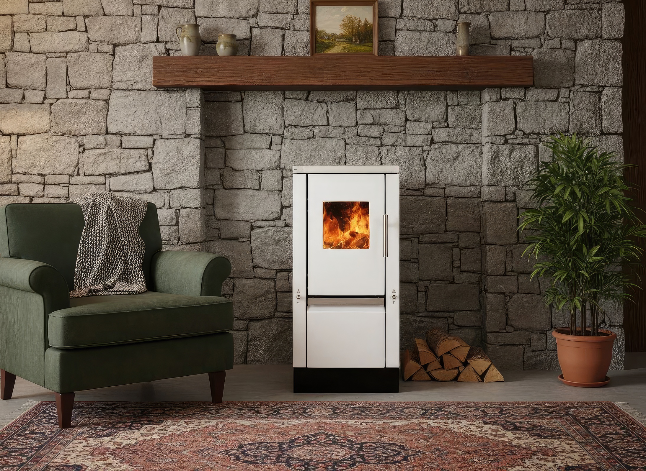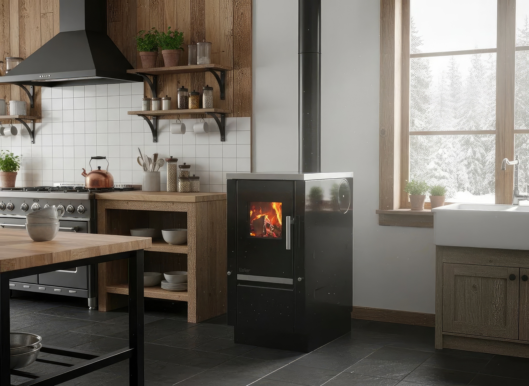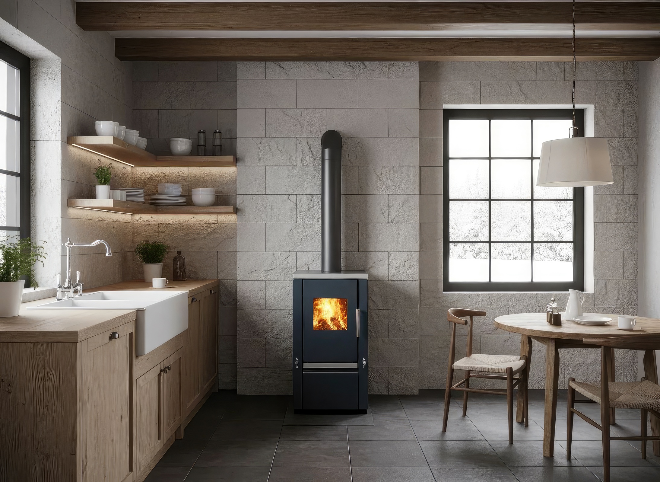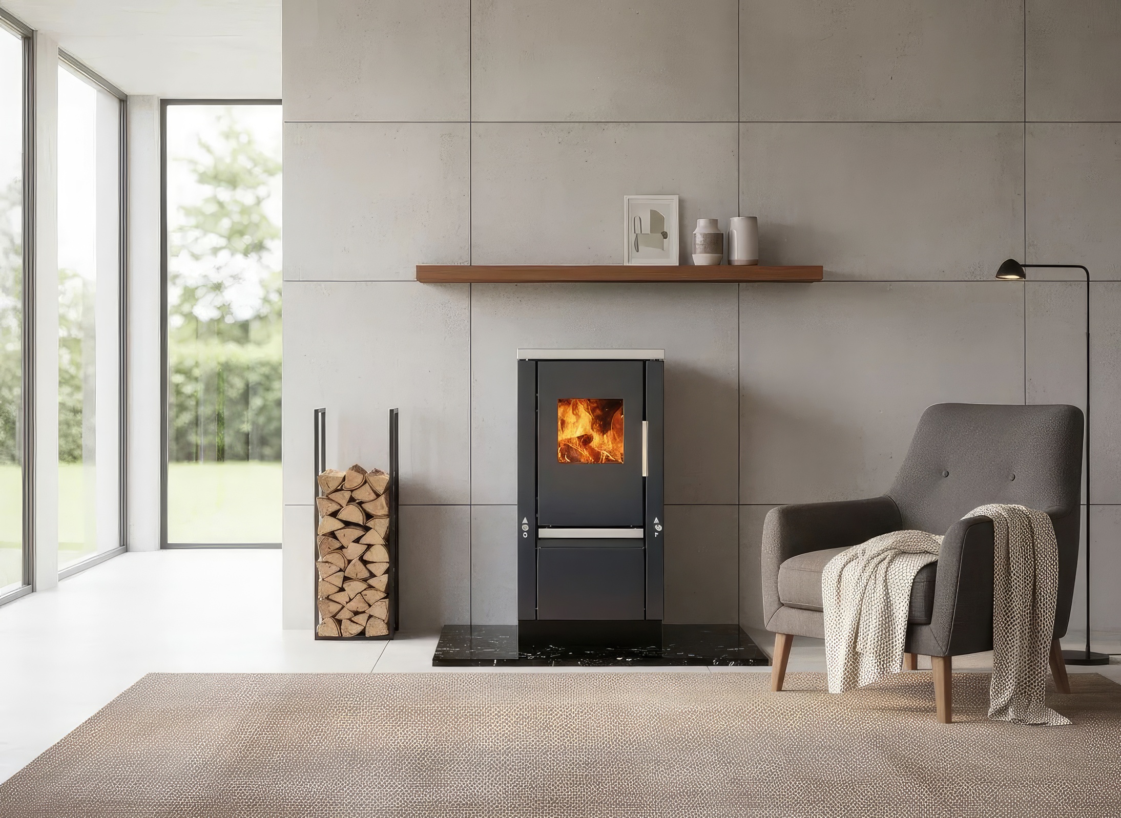 - КПД ~76 % — экономичное потребление дров