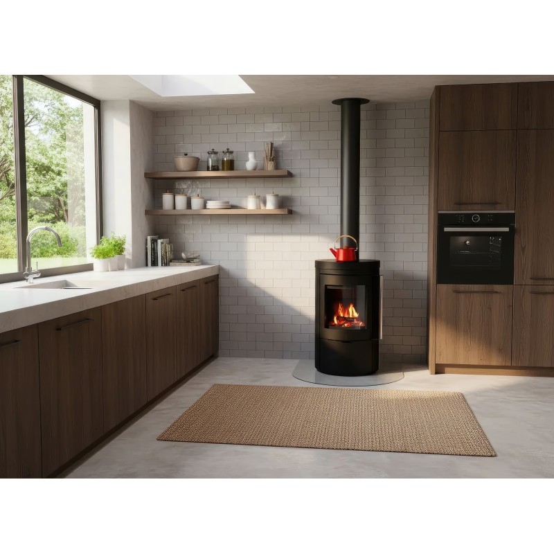 - Высокая теплоотдача 7 кВт: Печь способна быстро прогреть помещения площадью до 70 м², поддерживая комфортную температуру в течение долгого времени.